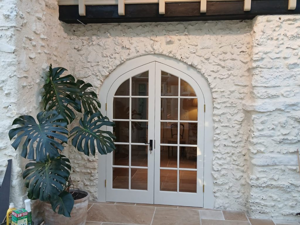 The key feature of these doors is the curved design. It took meticulous setting and working out from our team to get the design spot on. We had to ensure that they met in the middle to produce the stunning curve at the head. We finished the doors in Slipper Satin from Farrow and Ball which is a soft chalky off white that suits the design.